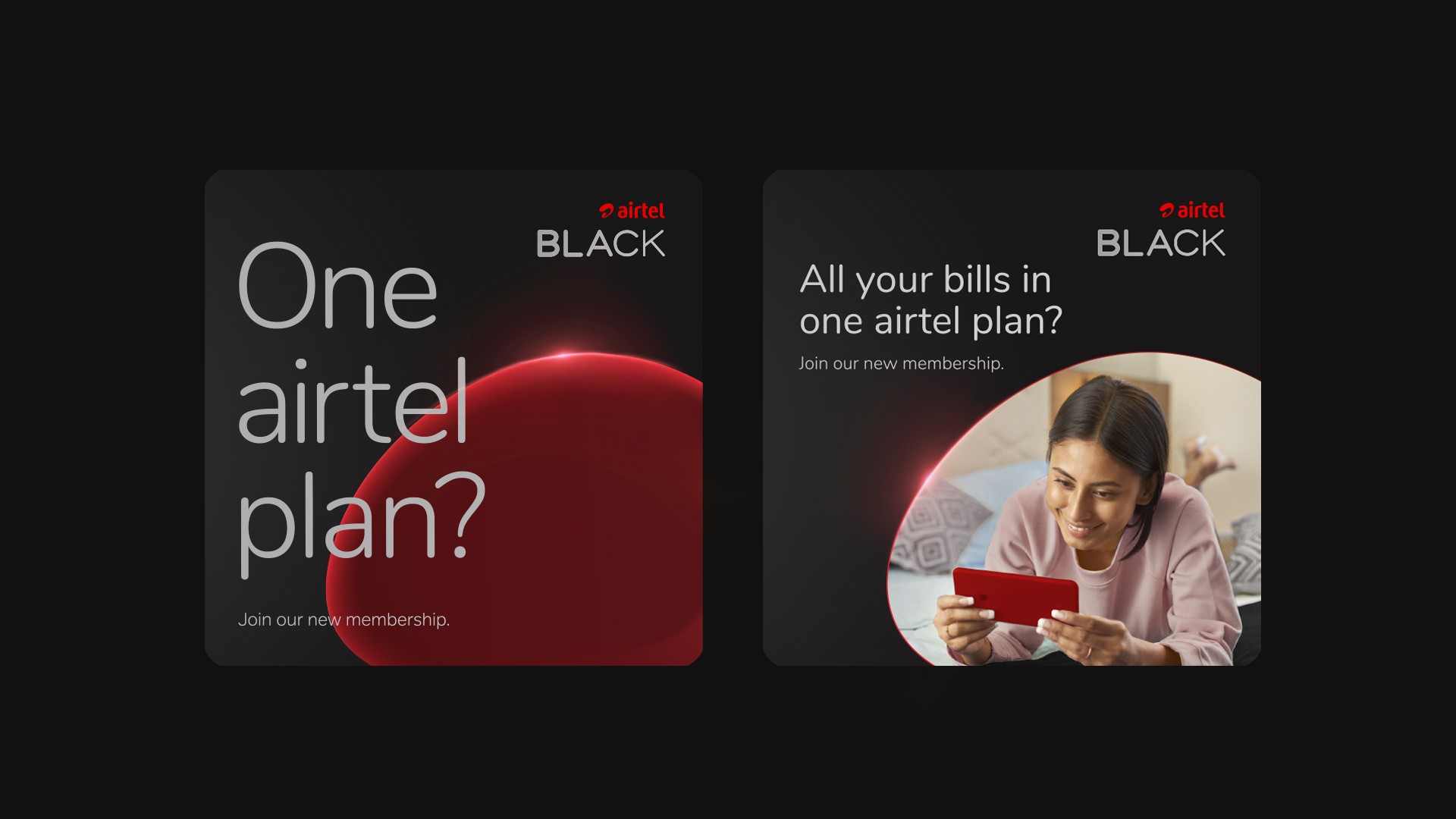 Airtel envisioned transforming Indian households into integrated Airtel homes by merging their prepaid, postpaid, Wi-Fi, and DTH services into a single, cohesive ecosystem called Airtel Black. To generate excitement about this innovative experience, I developed a distinct identity for Airtel Black that emphasizes not only the program's features but also its emotional advantages.