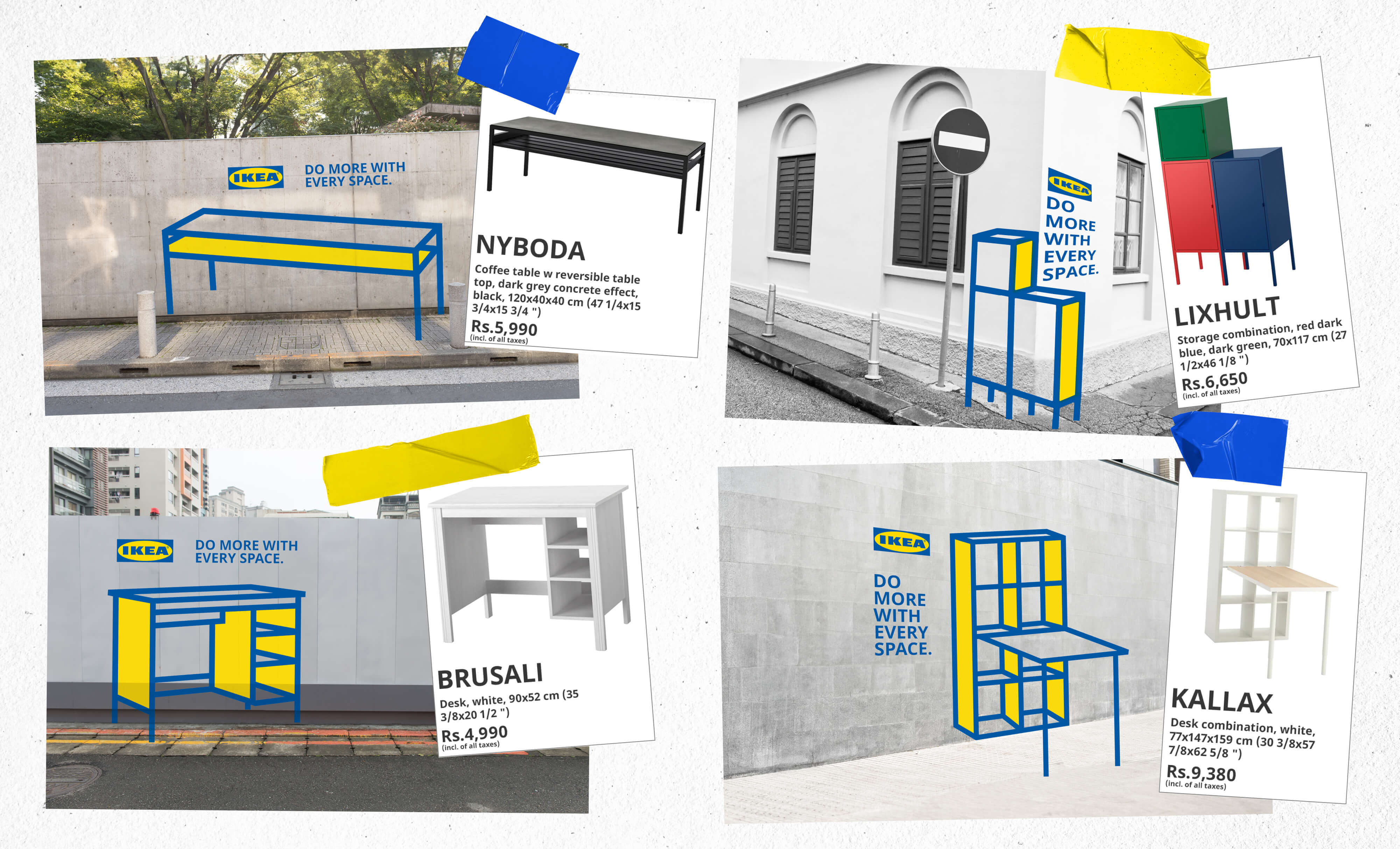 The campaign's central theme emphasized IKEA's ability to maximize space efficiency through innovative design. This concept was visually brought to life using a blend of op art and tape art, creating striking, minimalistic street installations that seamlessly integrated IKEA products into Mumbai's urban landscape.