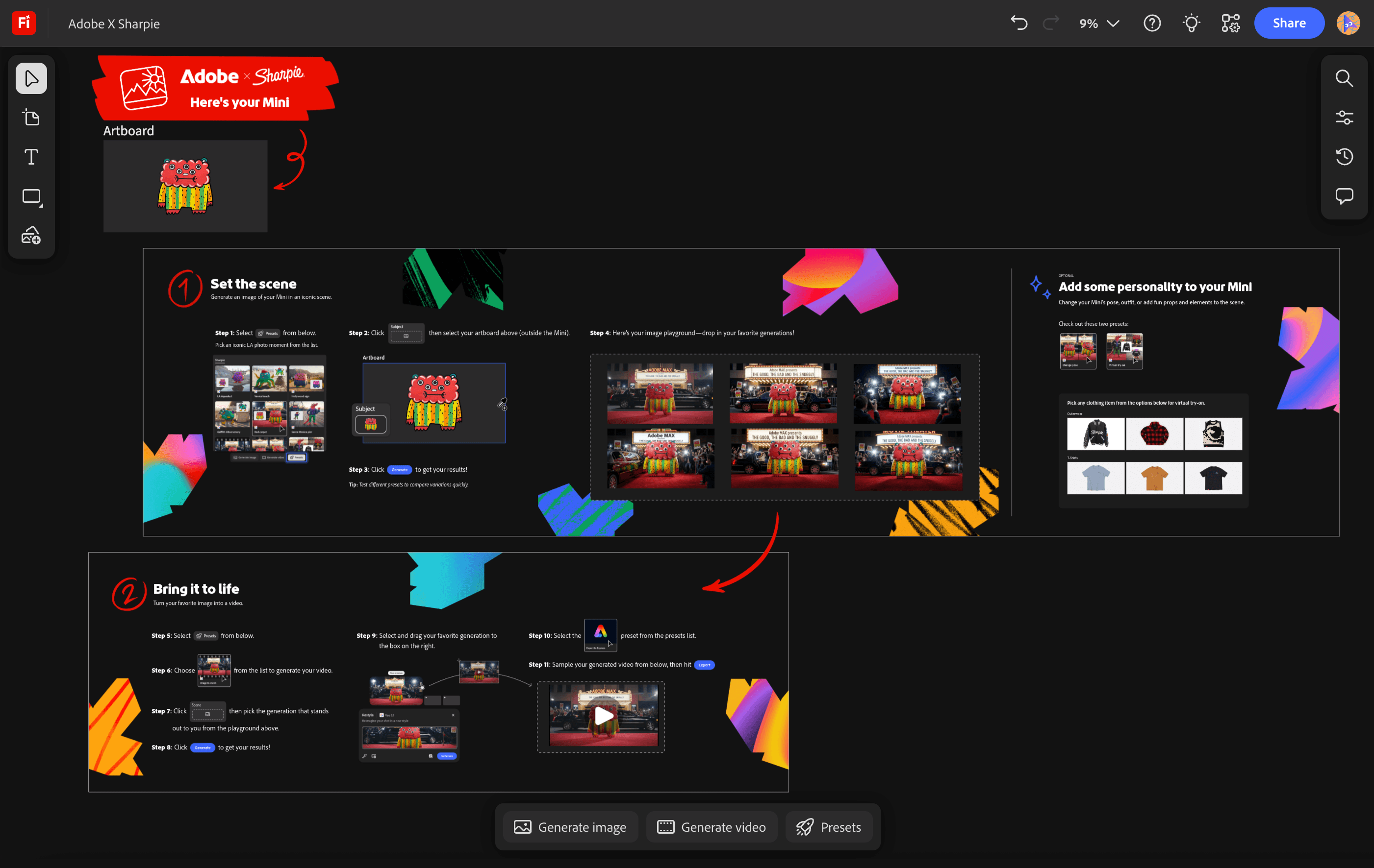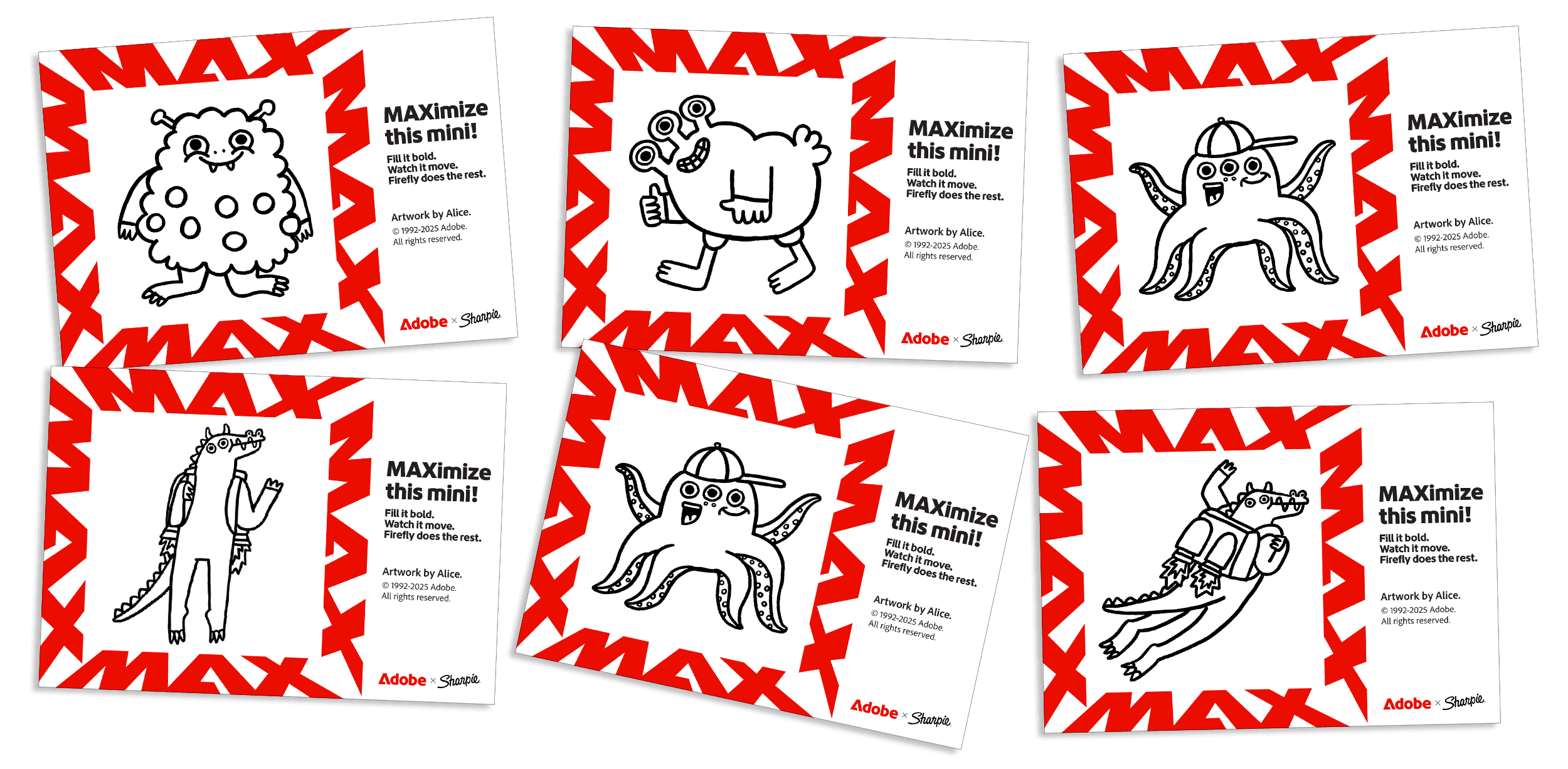 At Adobe MAX 2025, we partnered with Sharpie to transform attendee sketches into animated, expressive characters using Firefly Boards. Visitors created their own “MAX Minis” with Sharpie Creative Markers, scanned them on-site, and watched them come to life instantly through Adobe’s AI-powered image-to-video flow. This activation combined tactile creativity with cutting-edge generative technology, turning simple marker lines into playful, personalized motion stories.
