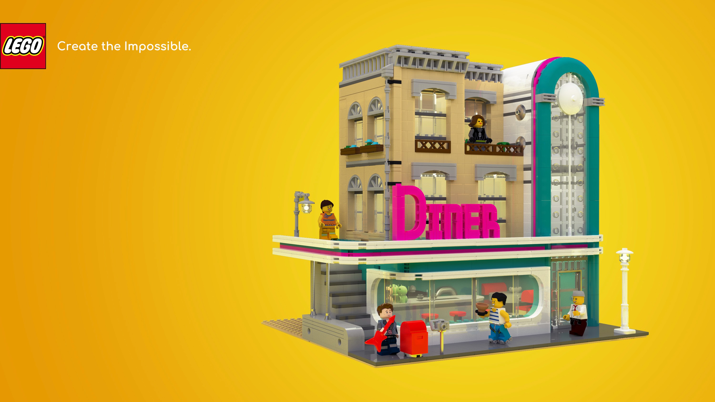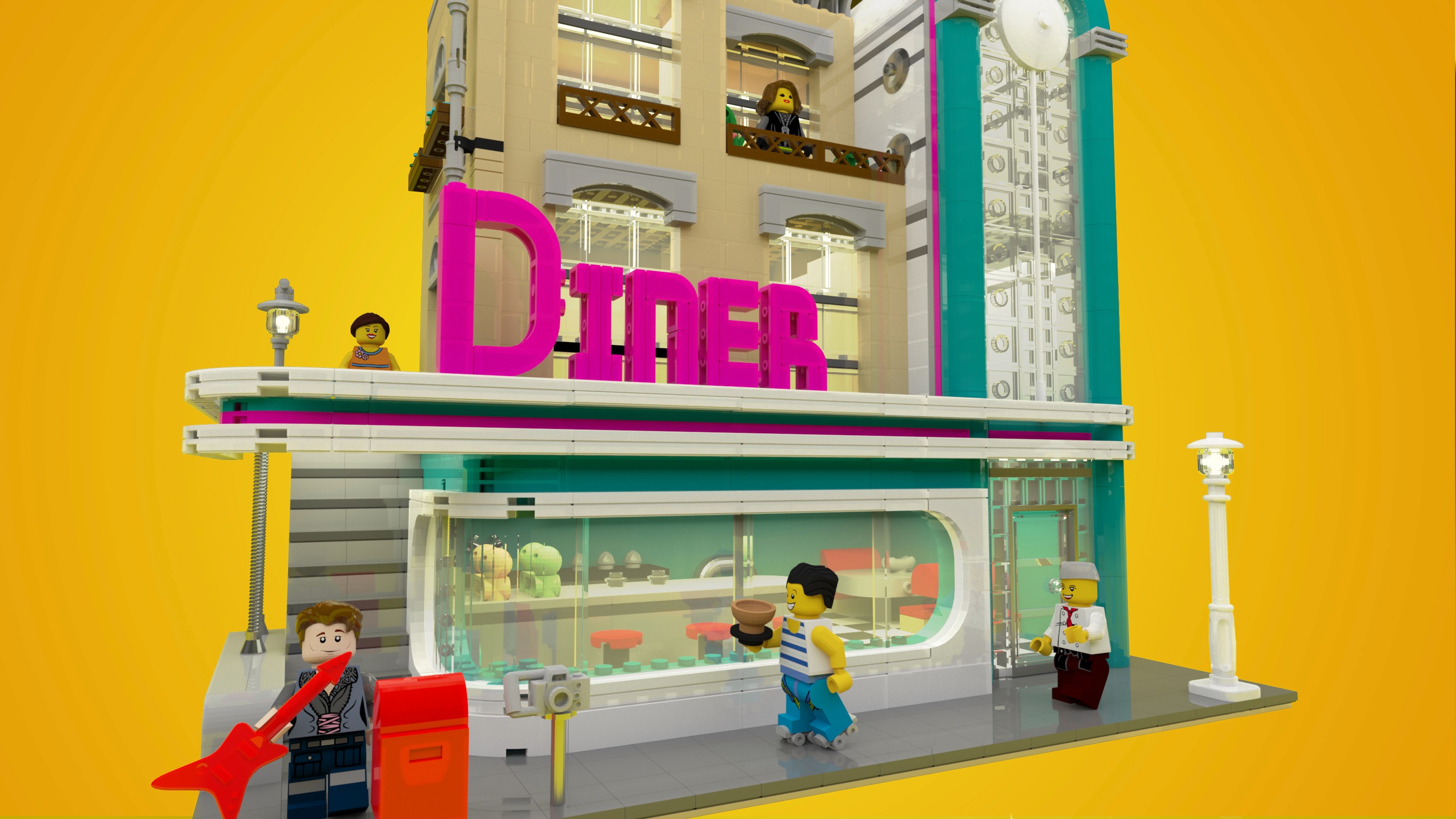Downtown Diner in 3ds Max: A Lego Tribute